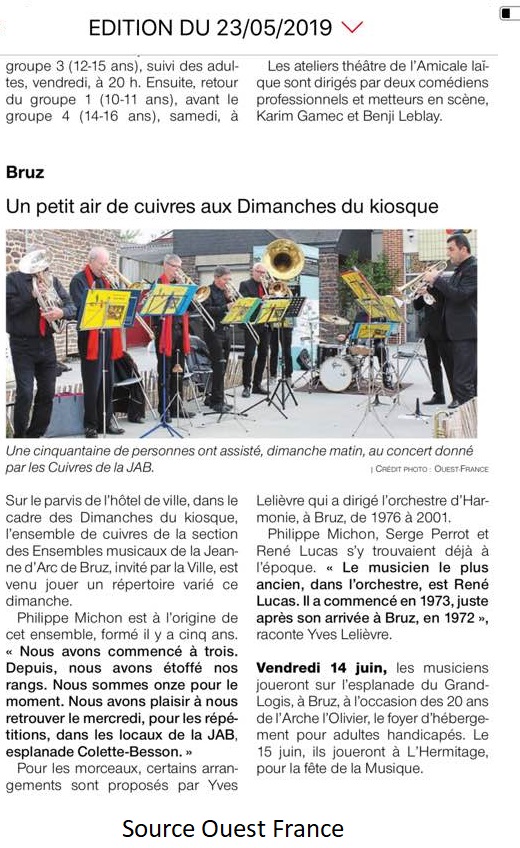 Publications Ensembles Musicaux Published Date: 16 avril 2019 [the_ad id=”18292″] Concert du dimanche au kiosque de Bruz